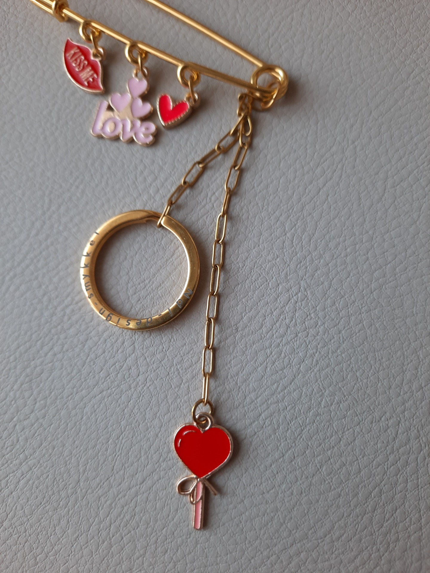 Med søde små, coatede emalje charms. Med indbygget smart design, funktionel som brilleholder.