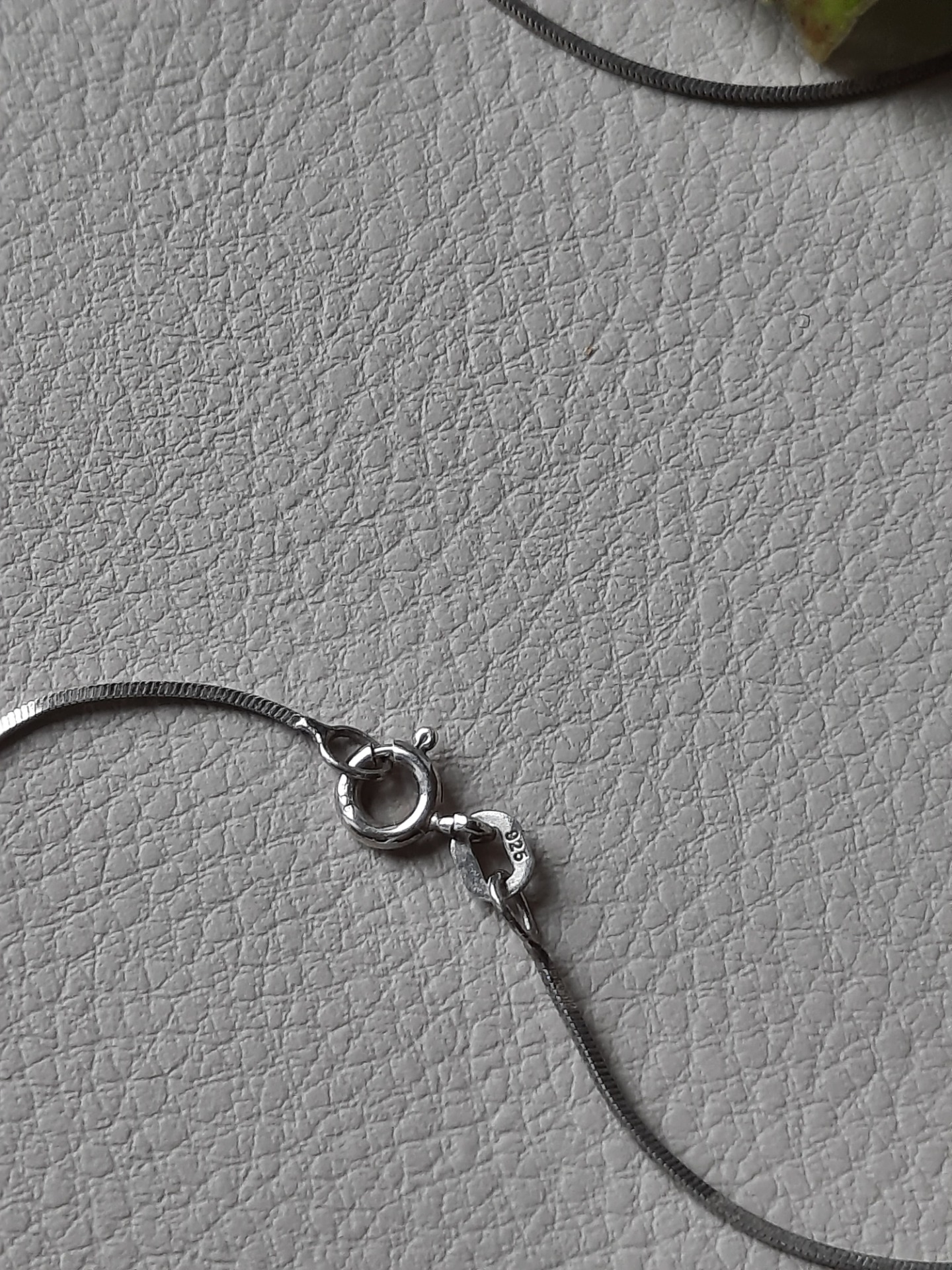 Kantet slange kæde med fin rund sølv lås. 45 cm.