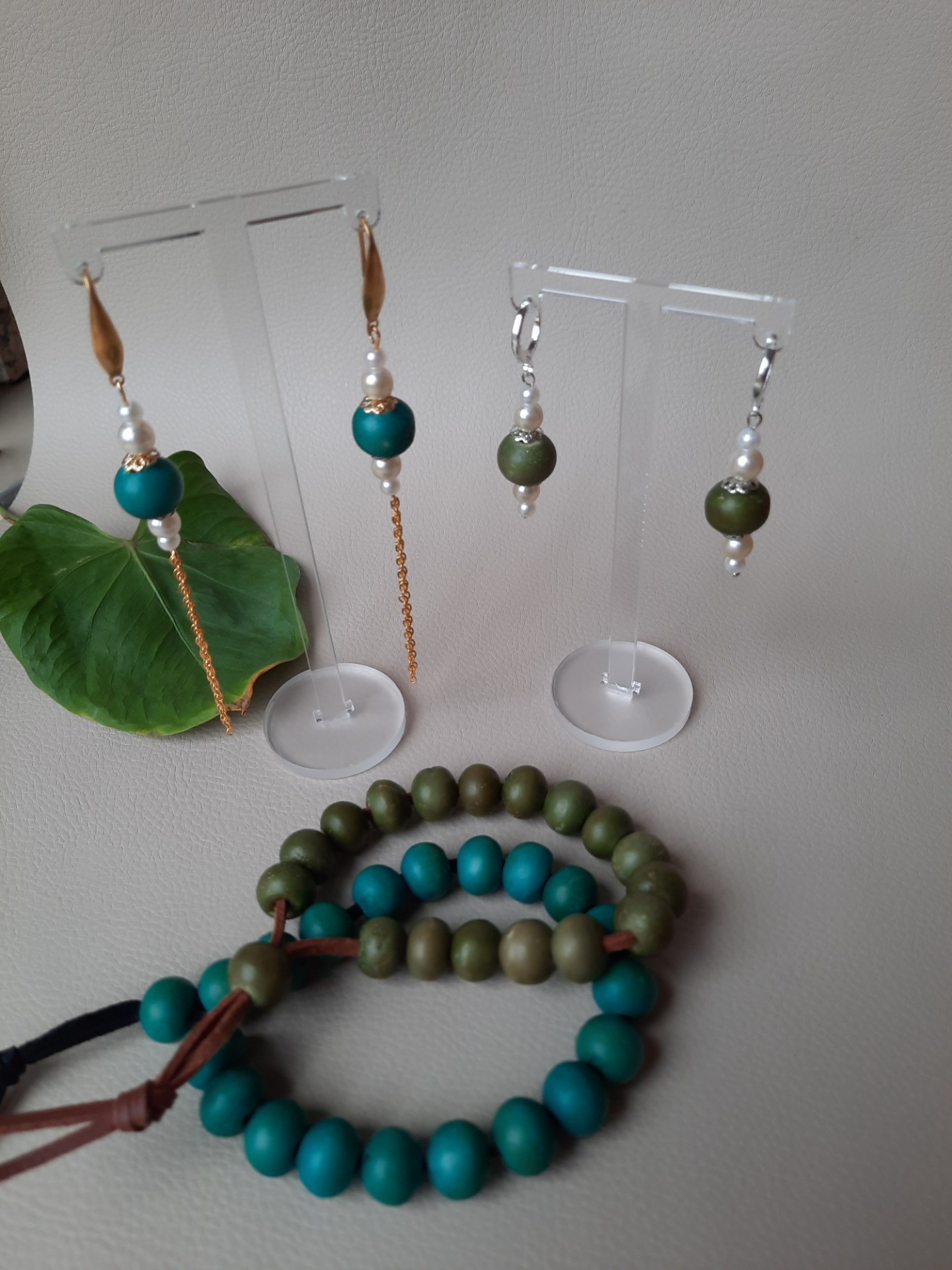 Smukke recyklede turkise og hvide perler. De turkise perler er porcelænsagtige og ca. 0,8mm. forgyldte sølv kæder.